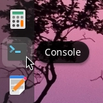 On Linux Kamarada, you can easily launch the terminal; it’s one of the apps pinned to the dock (more precisely, the app called Console):
